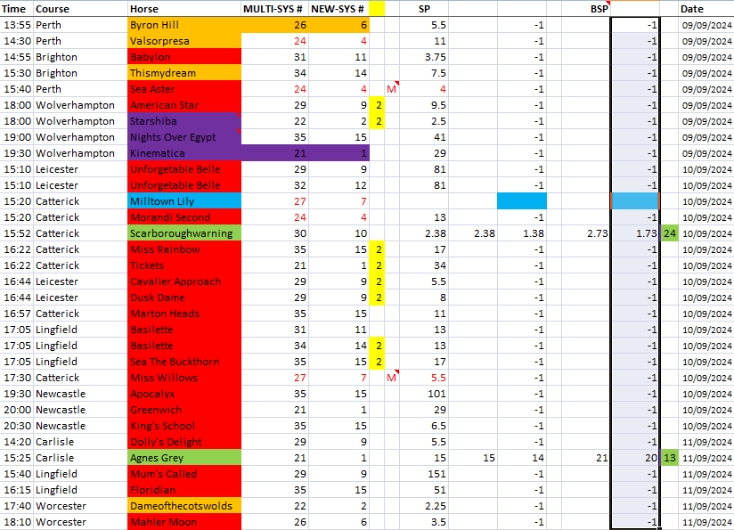 The only horse we would have backed from the list is Unforgettable Belle, which was selected by two separate systems (#29 and #32). We limit duplicate system qualifiers to a single bet. Given its status as an unlikely 80/1 outsider, I wouldn’t want to back it more than once regardless.